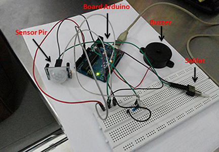 Jika alat sudah dirakit sesuai dengan rancangan diatas, sekarang mari kita mulai untuk membuat program untuk ditananmkan pada mikrokontrolernya. Secara sederhana program yang dibangun memiliki alur kerja seperti alarm pada umumnya. Dengan memanfaatkan Saklar sebagai pengontrol untuk mengaktikan atau mengnonaktikan sistem secara menyeluruh. Berikut ini ketikan sintak yang ditanamkan pada mikrokontrolernya