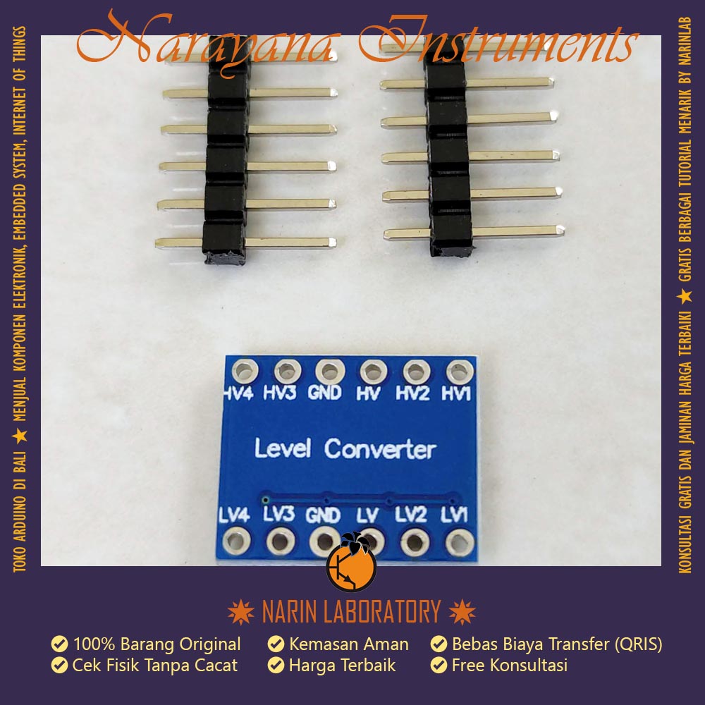 Modul Logic Level Converter dapat mengubah level sinyal digital dari level tegangan rendah (seperti 3.3V) ke level tegangan yang lebih tinggi (seperti 5V) atau sebaliknya. Modul ini biasanya terdiri dari satu atau beberapa kanal dan setiap kanal terdiri dari dua pin input (satu untuk level rendah dan satu lagi untuk level tinggi) serta dua pin output (satu untuk level rendah dan satu lagi untuk level tinggi).